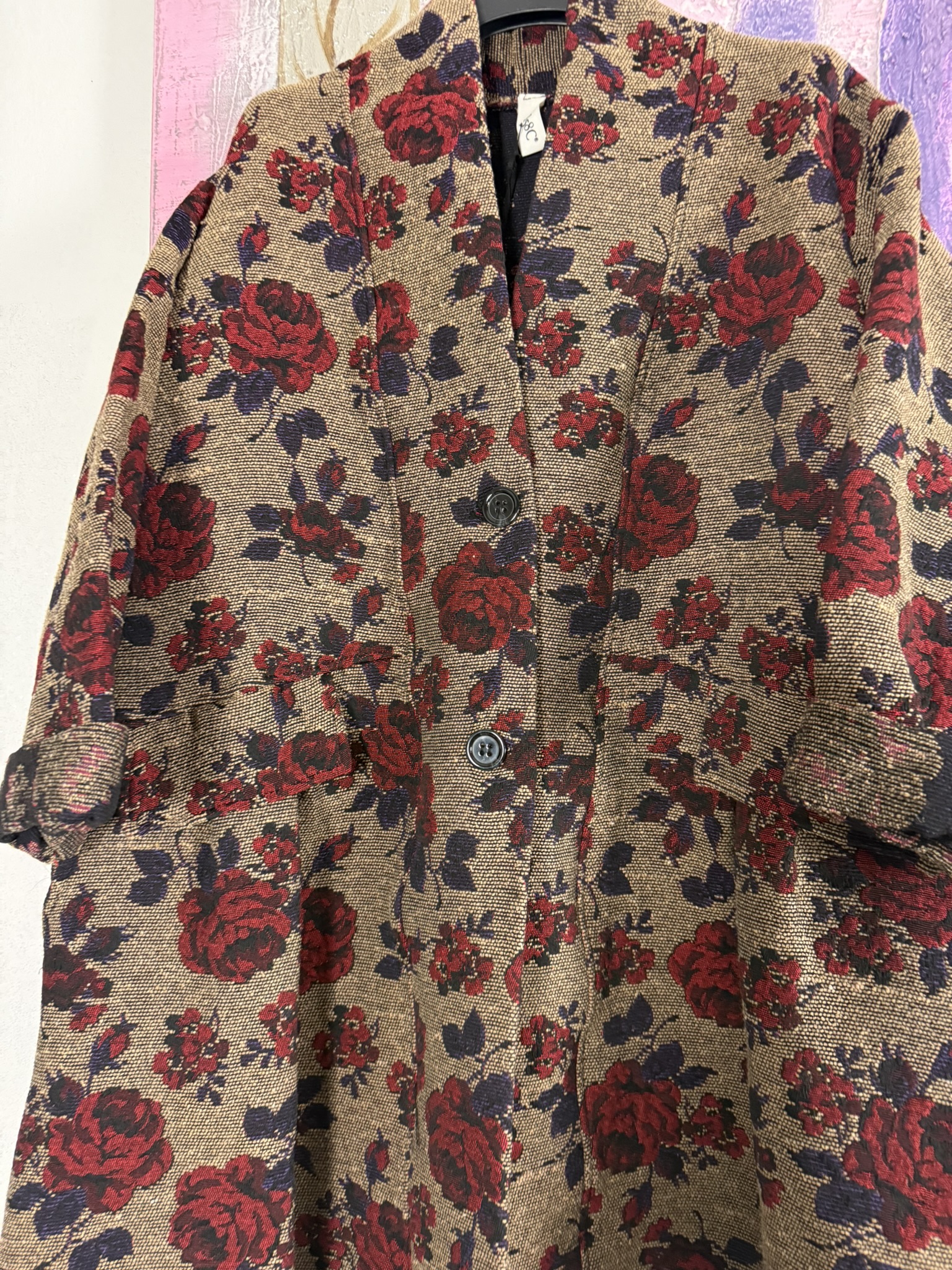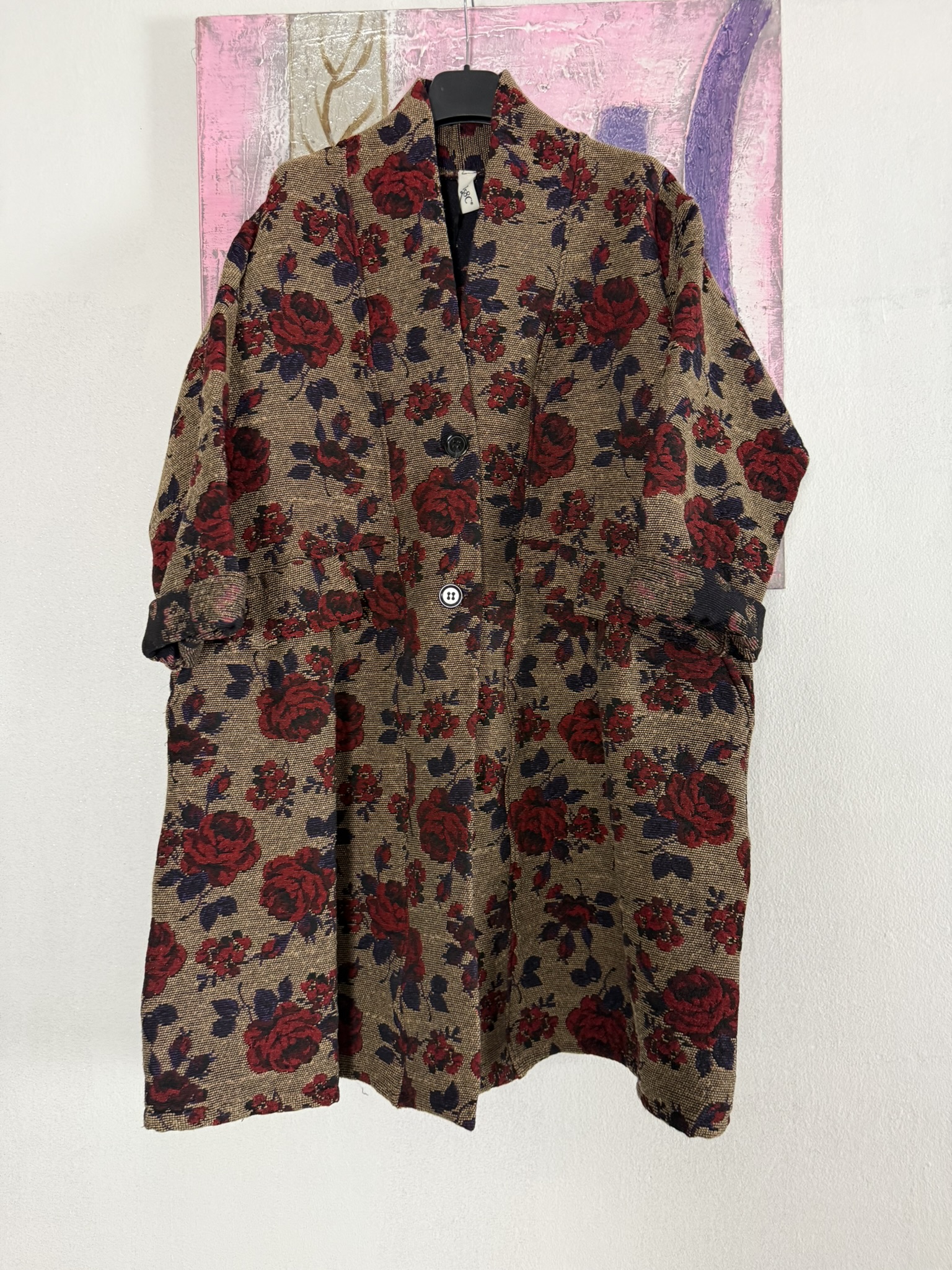 Cappotto perfetto per la stagione autunnale, modello morbido con chiusura a 2 bottoni e tasche finte applicate. Sono presenti delle delle pence che lo rendono leggermente a palloncino. Disponibile in taglia unica, veste fino alla taglia 48 comoda.