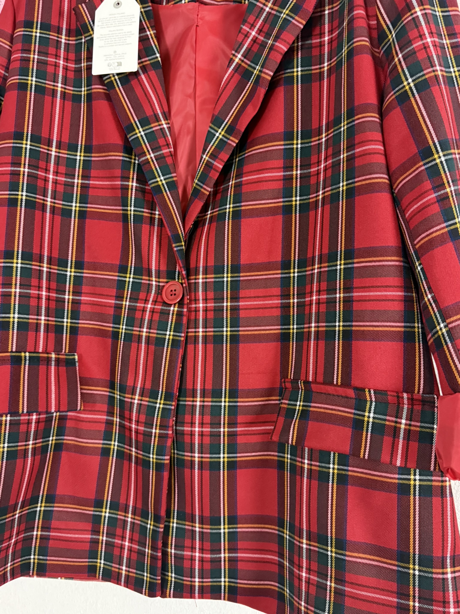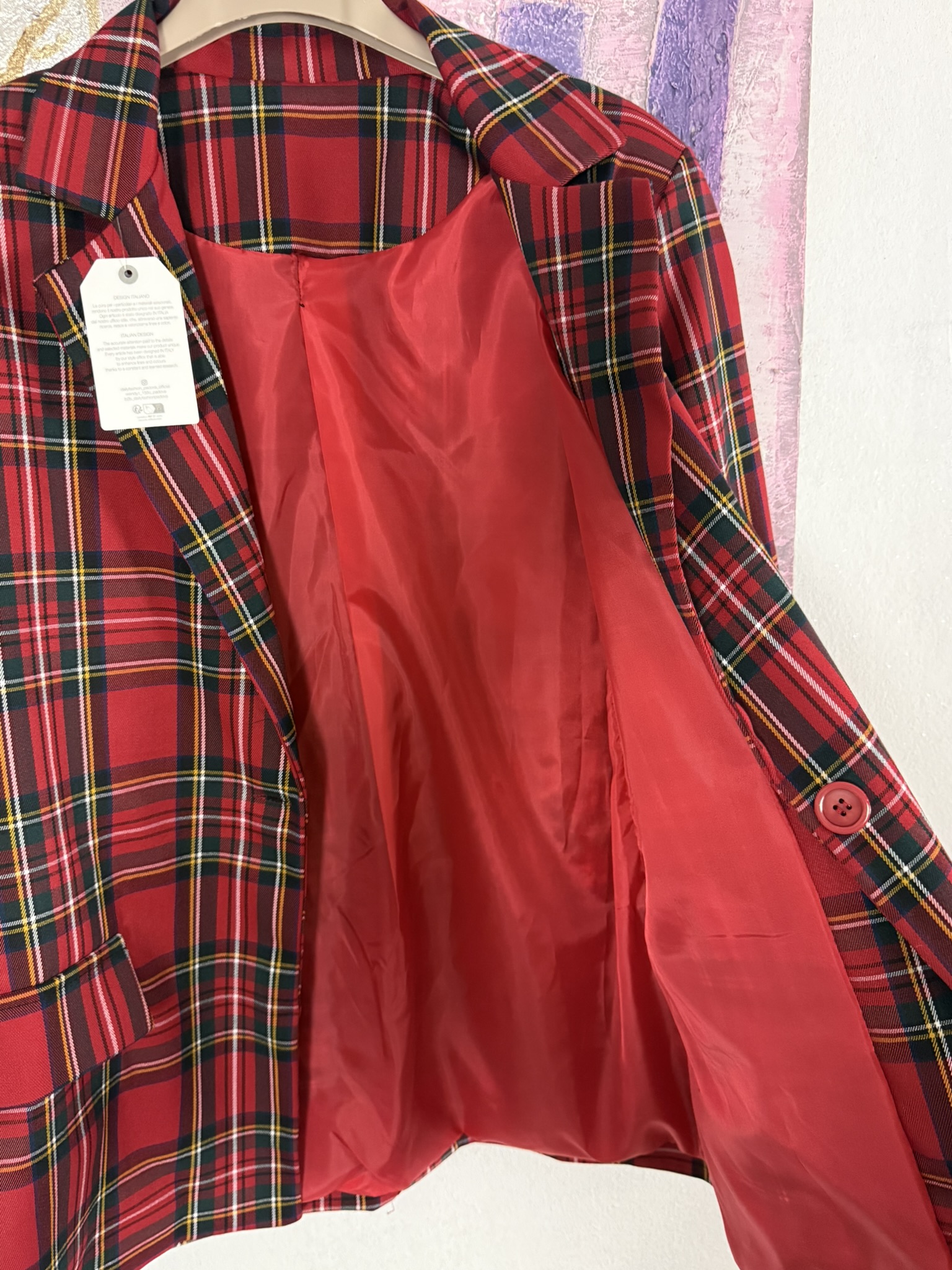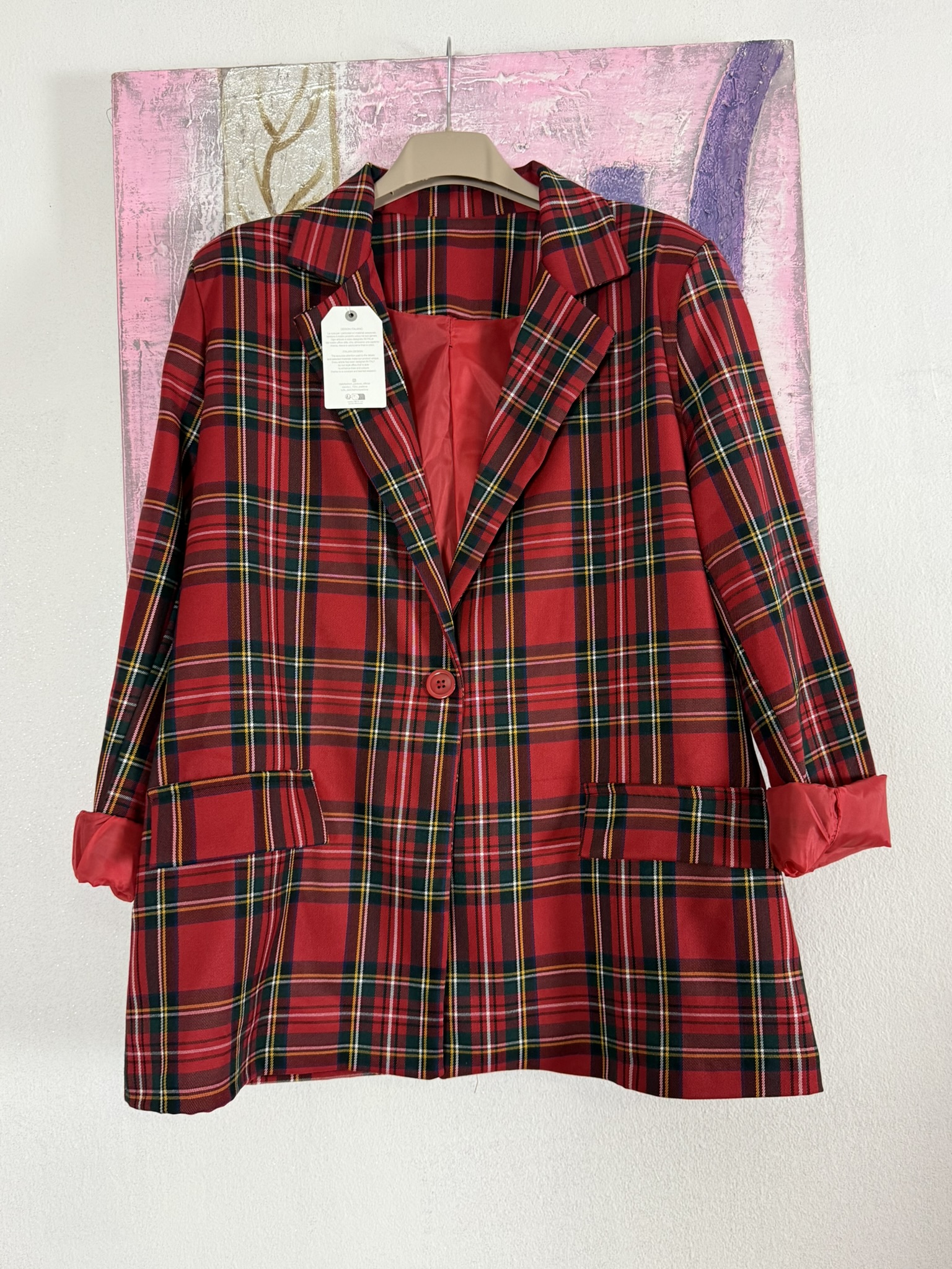 Blazer in tartan a bottone centrale, foderato all’interno e anche sulle maniche. Disponibile in taglia unica, veste fino alla taglia L.
