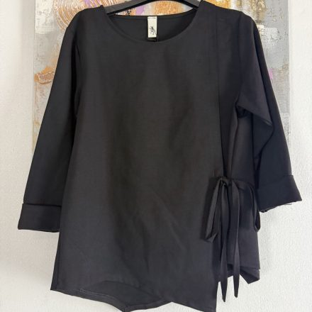 Blusa con collo largo ad anello, manica lunga portabile a 3/4. Modello svasato e asimmetrico. Disponibile in 2 colori e in taglia unica, veste fino alla taglia 48 comoda.